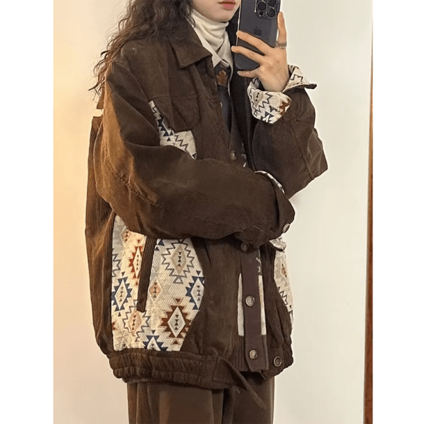 Stay stylish and on-trend this fall with our Retro Fall Jacket. The perfect balance between fashion and function, this aesthetic brown corduroy jacket will keep you warm and fashionable at the same time. Upgrade your wardrobe with this must-have piece!