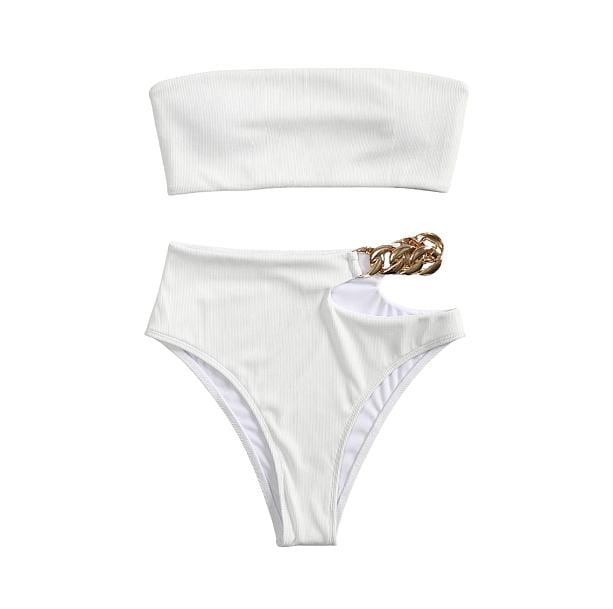 Description: This gorgeous two-piece Aesthetic Bikini With Chain will bring out your best features. Enjoy the smooth fabric and the flattering design with gold color chain on the side! This vintage style swimwear i is just perfect for any aesthetic girl!
