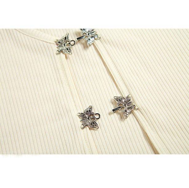 The "Y2K Butterfly Button Top" is all about versatility. The two-piece design offers endless styling possibilities. Wear the top and bottom together for a coordinated ensemble that exudes effortless chic, or mix and match with other wardrobe staples to create your own unique combinations.